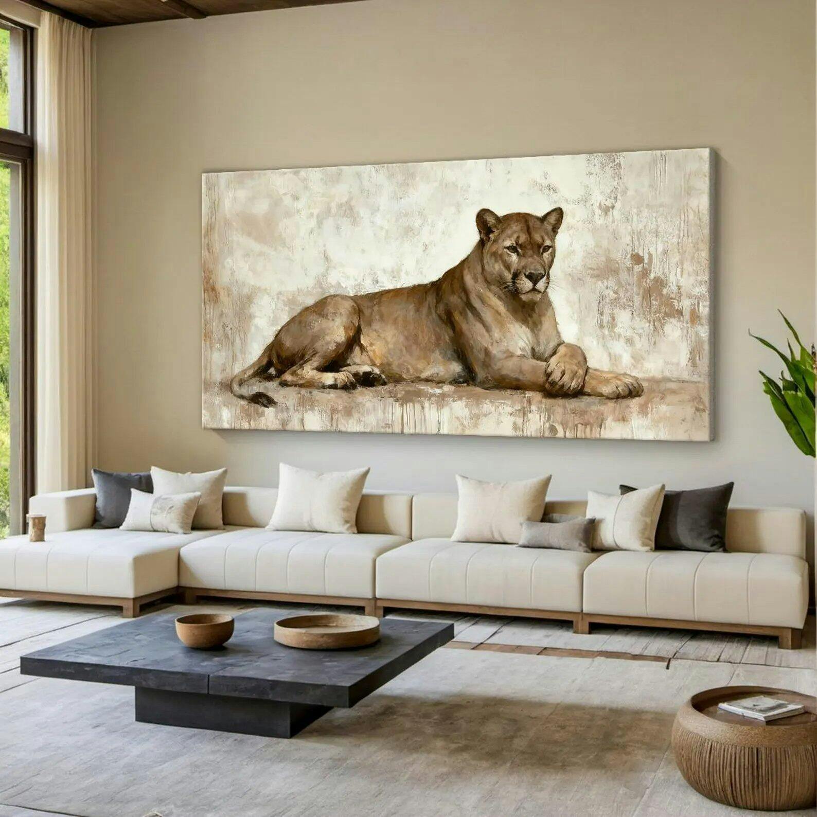 This lioness print is absolutely stunning. The warm neutral tones and soft brushstrokes bring such elegant, calm energy to my space. Perfect modern vintage decor! 🎨