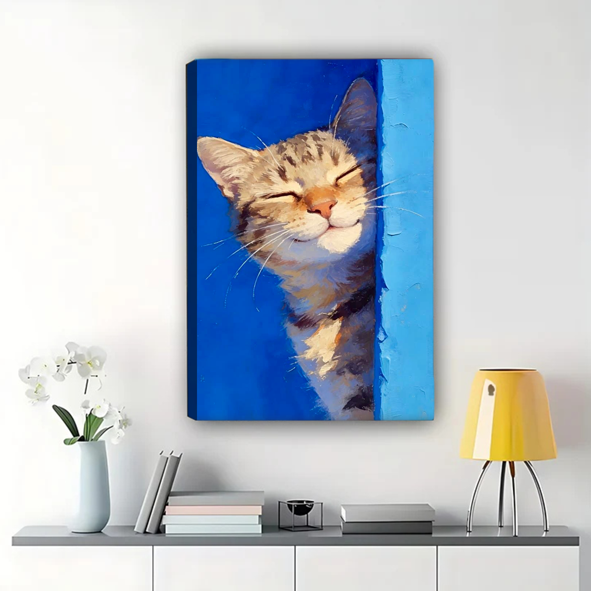 Happy Sleeping Cat Wall Art - Peaceful Tabby Portrait Print|W1227
