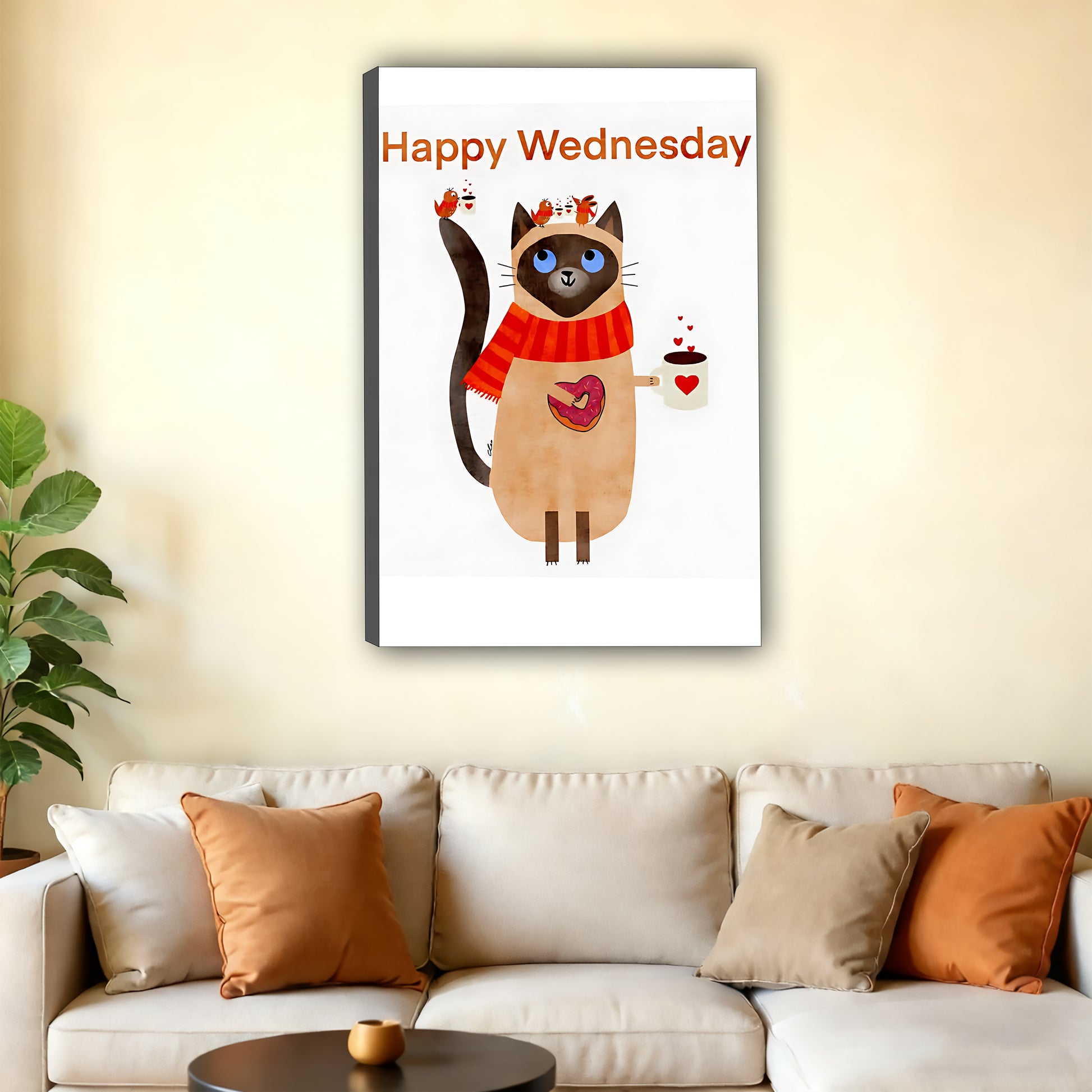 This nap-loving kitty is exactly my energy. Looks adorable above my couch.