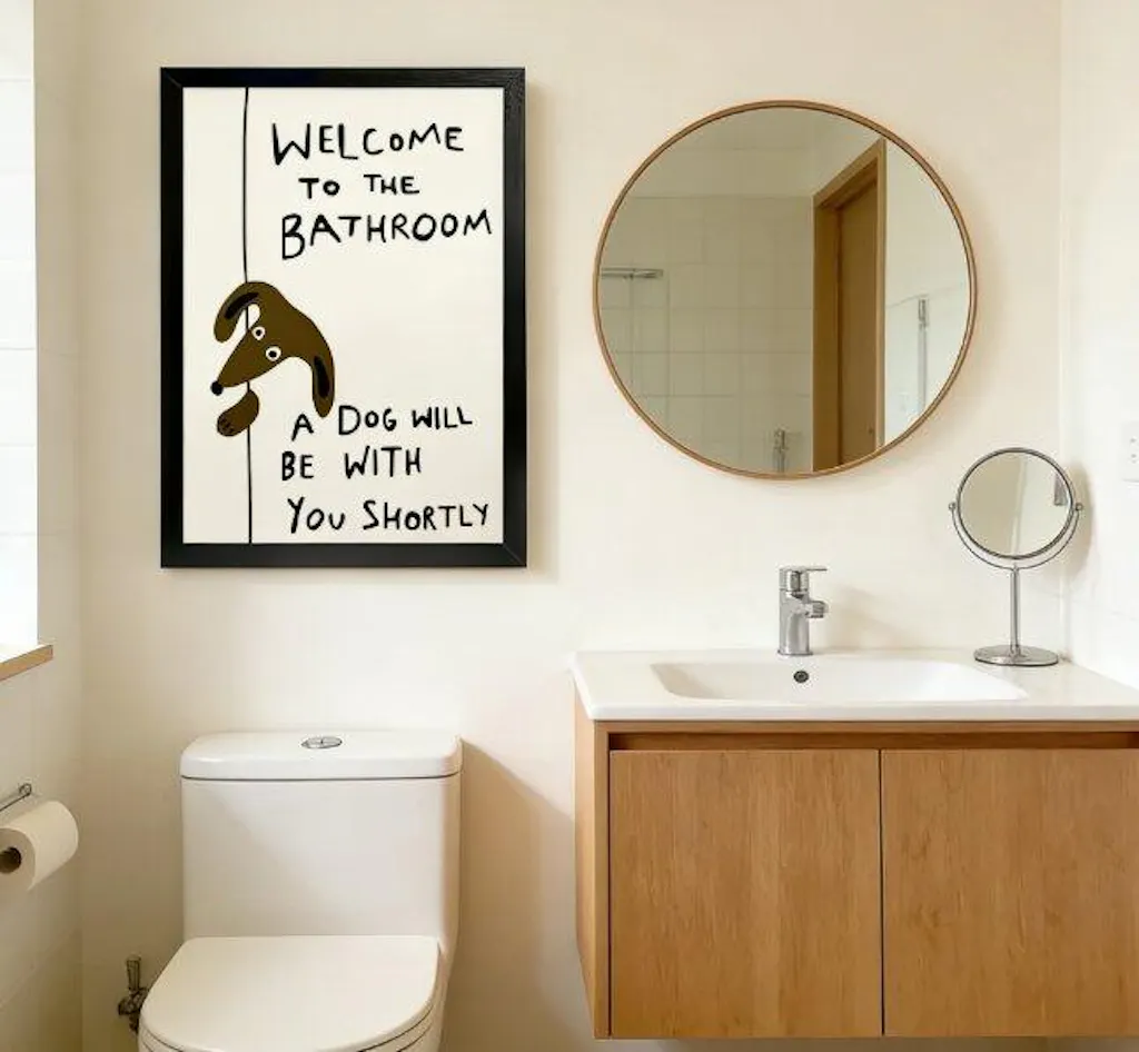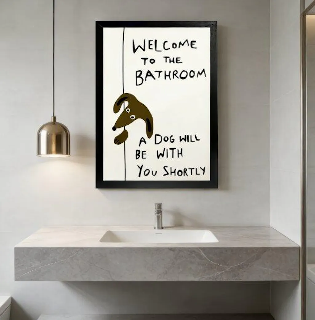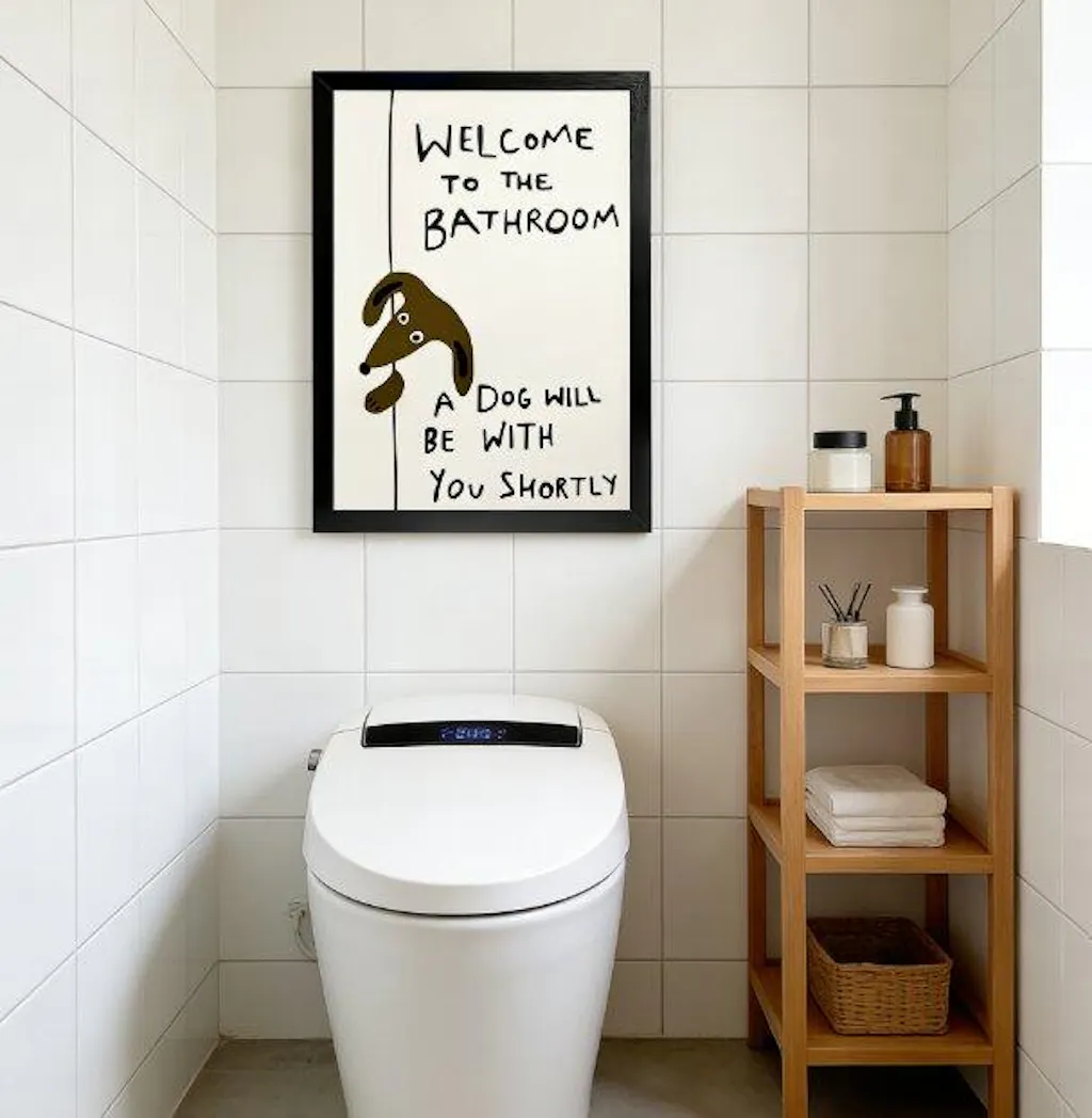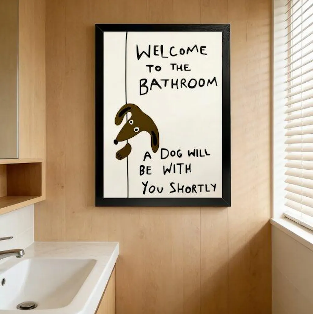 As a dachshund dad, this print was made for me. The humor is lighthearted and relatable, and it’s lightweight enough to hang without drilling. It instantly makes my bathroom feel more fun and welcoming. 10/10!